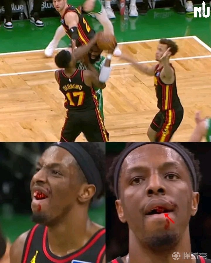 英超新闻北京时间1月29日,NBA常规赛,凯尔特人主场106-117不敌老鹰。奥孔古在防守杰伦-布朗时,被后者不小心一肘打掉牙齿,画面有些瘆人。