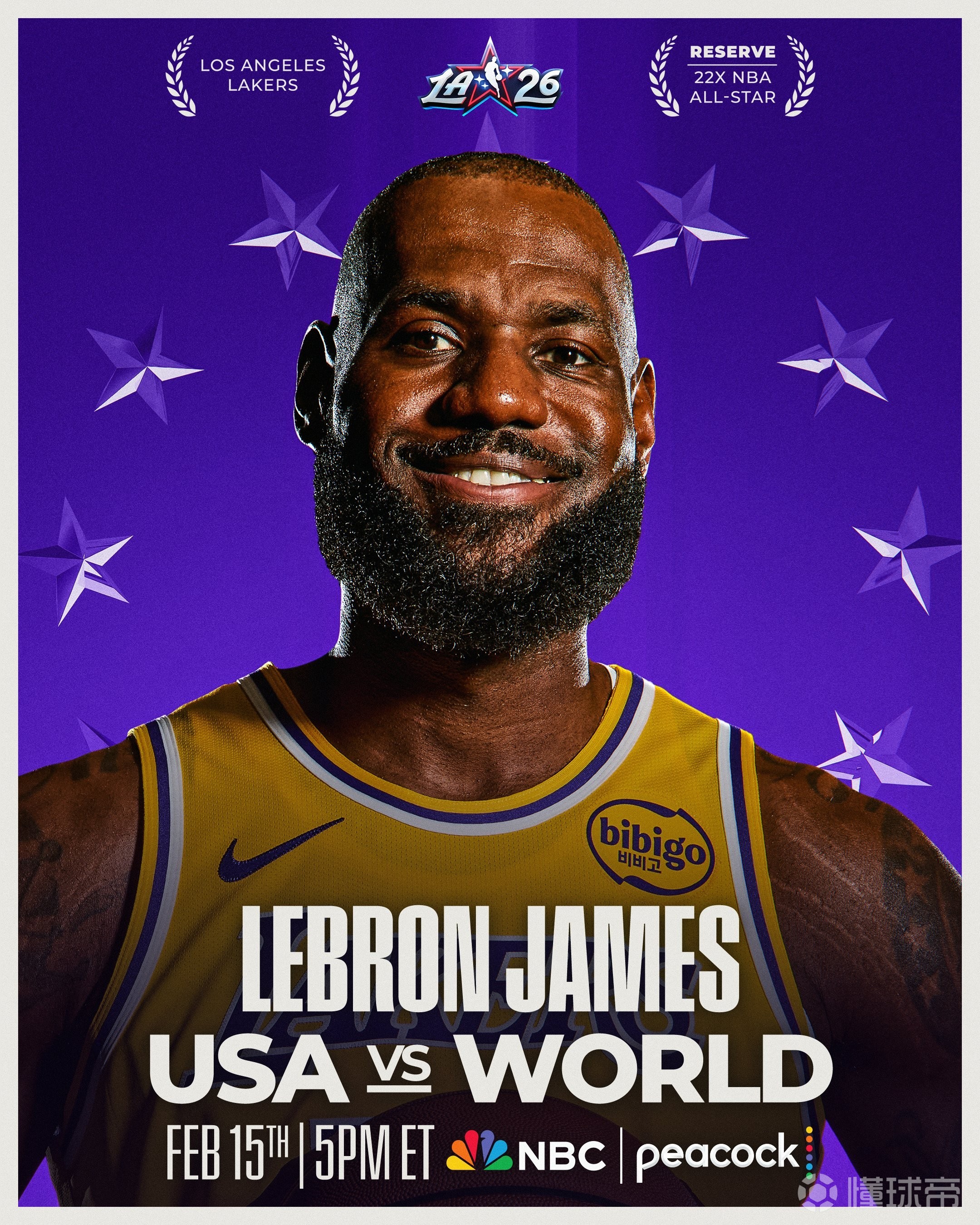 现年41岁的湖人前锋詹姆斯职业生涯首次以替补球员身份入选全明星赛。