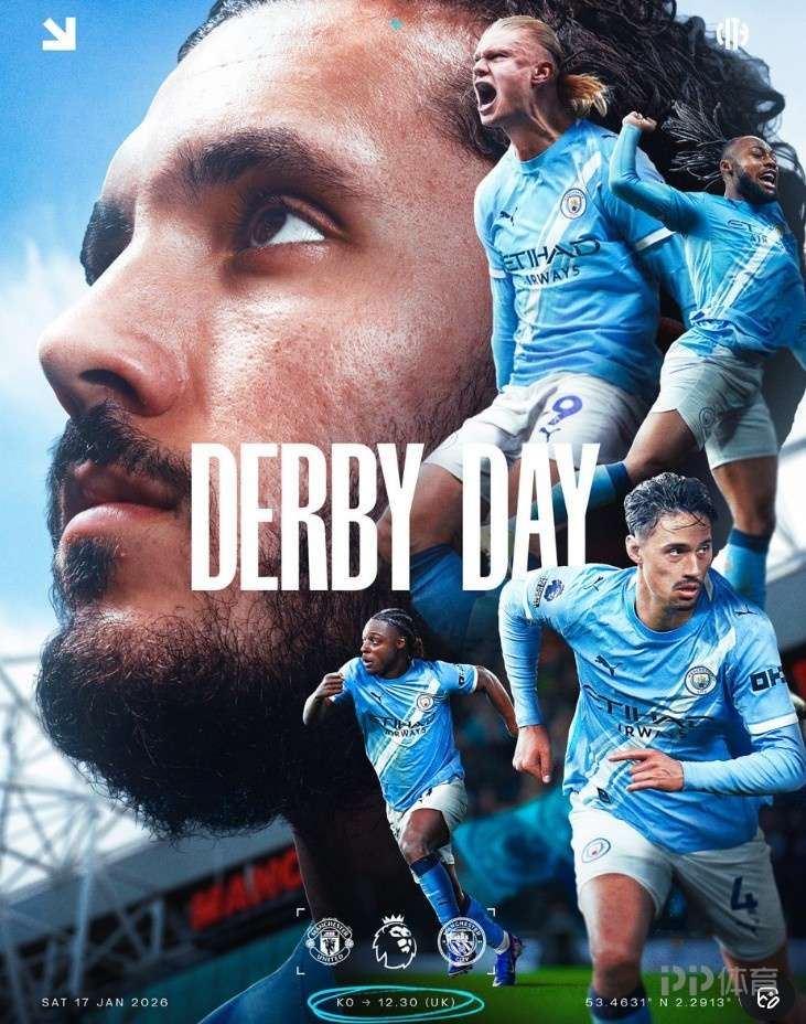 本轮英超将迎来焦点战曼市德比,曼城官方也晒出海报为本场比赛预热。