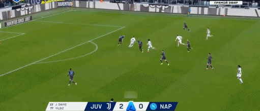 第22分钟,洛卡特利妙传,戴维对抗后破门,尤文1-0那不勒斯