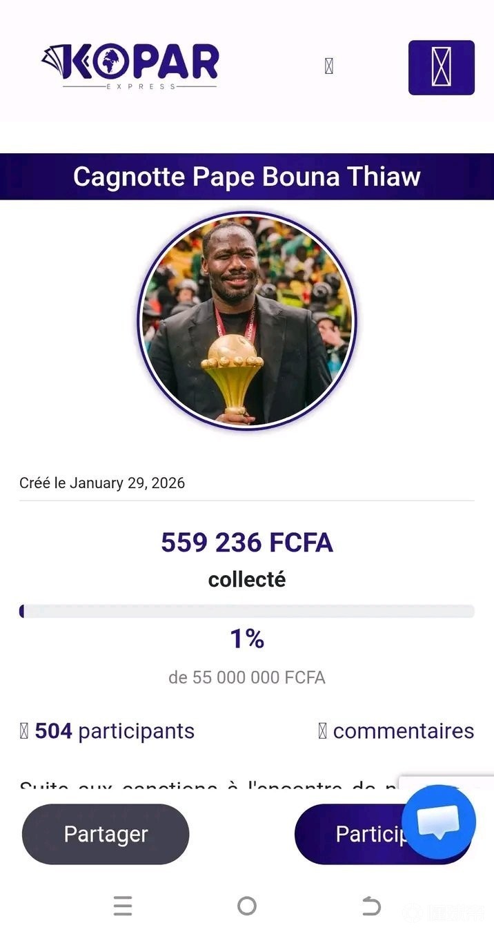 英超新闻塞内加尔主帅蒂奥因"违反体育道德行为"被禁赛五场并罚款7.2万英镑——他在非洲杯决赛中曾指示球员离场,塞内加尔球迷得知此事后,开启众筹为其支付罚款。