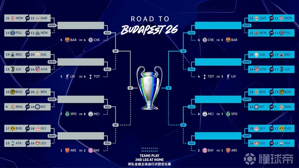 欧冠淘汰赛抽签规则及完整赛程公布欧足联正式公布欧...