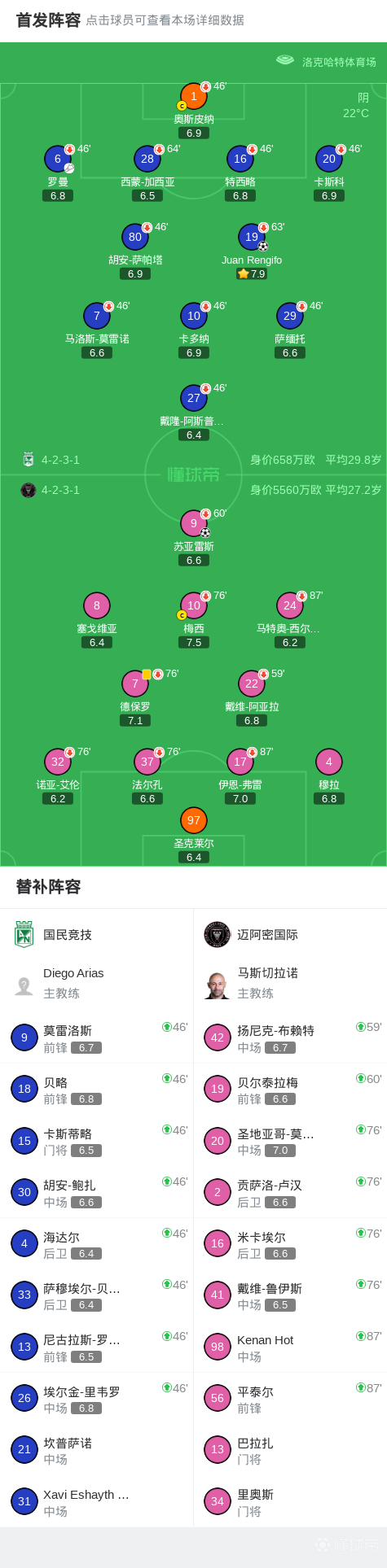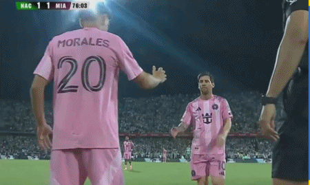 第77分钟,迈阿密国际换人调整,梅西被换下,莫拉莱斯替补登场
