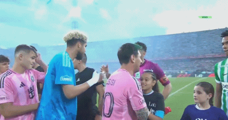 赛前,梅西与伊基塔互动