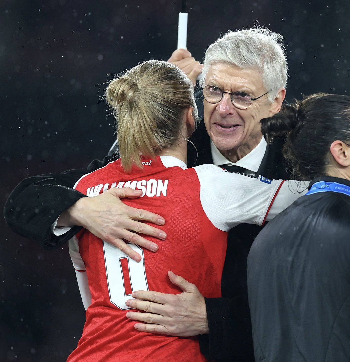 (教授拥抱阿森纳女足主帅蕾妮姐)