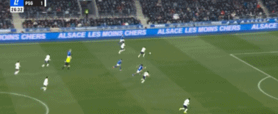 第27分钟,盖拉-杜埃禁区插上推射破门,斯特拉斯堡1-1扳平巴黎