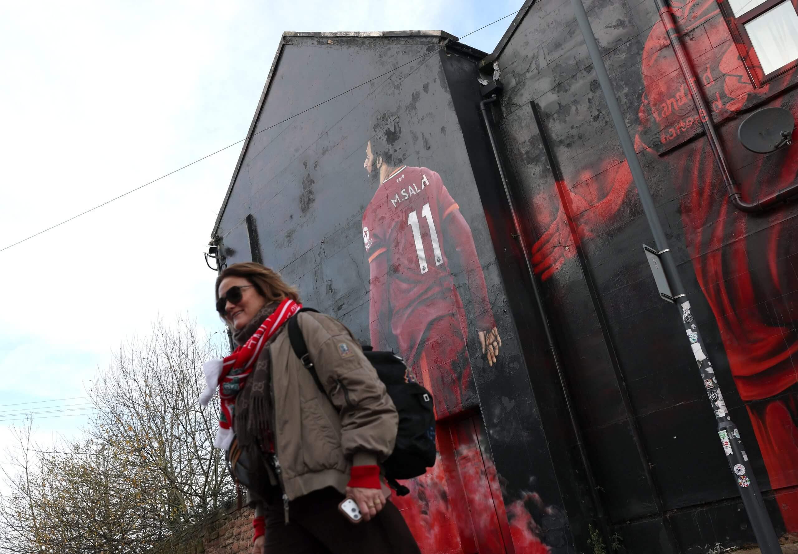 在安菲尔德球场开赛前几小时,国王哈利酒吧附近已排起长队。球场周围的阶梯街道装饰着歌颂利物浦过去与现在英雄的壁画。在布莱辛顿路与安菲尔德路交汇的转角,向穆罕默德-萨拉赫致敬的壁画前聚集了相当多的人群。